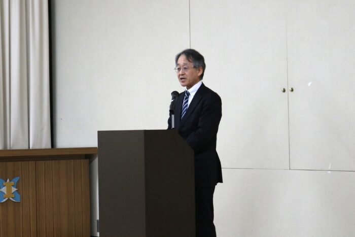 4月25日(金)に、今年度採用となった特待生・奨学生への伝達式を行いました。特待生(新入生)、奨学生(2年生~4年生)の代表者が登壇し、船﨑健一学長から採用通知を受け取りました。船﨑学長は対象学生に向け「採用されたことを誇りに感じ、本学の名に恥じない活動をしてほしい」と、今後の活躍を期待しました。