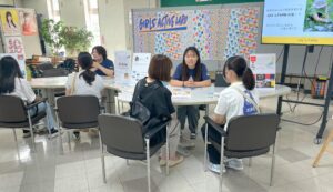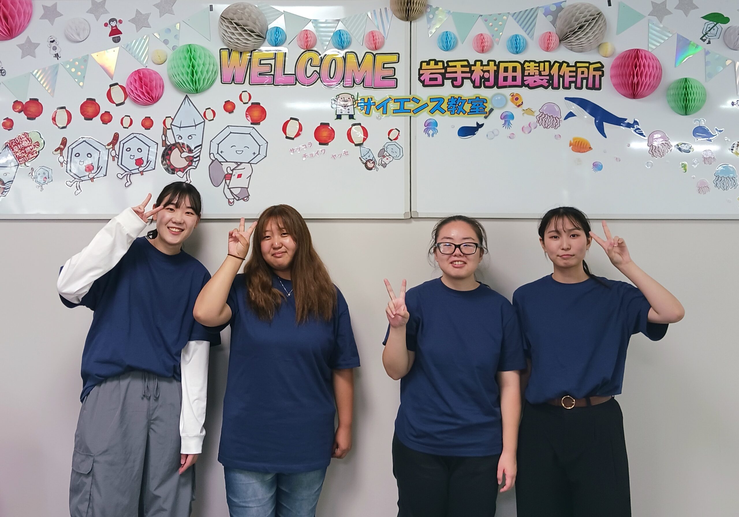 理工系に進学する女子学生が少ない傾向にあるため、大学で学んでいる知識やスキルを活かして、小中高生に理工系分野への興味や関心を高めてもらうための活動を行っています。8月は本学 ” オープンキャンパス ” で女子高校生向けに相談ブースを出展したり、岩手村田製作所久慈工場で行われた ” サイエンス教室 ” にも参加しました。