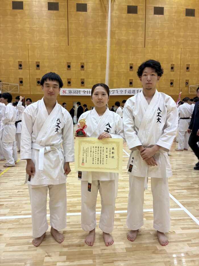 9月28日(日)、国立オリンピック記念青少年総合センターにて開催された第38回全日本理工系学生空手道選手権大会に、本学空手部の3名が個人戦に出場しました。生命環境科学コース2年の細越さくらさん(岩手・宮古高校出身)は、女子組手の部で見事3位に入賞しました。空手部は現在部員6名、今年度から全日本理工科系学生空手道連盟に新たに加入し、初参加ながら健闘を見せました。