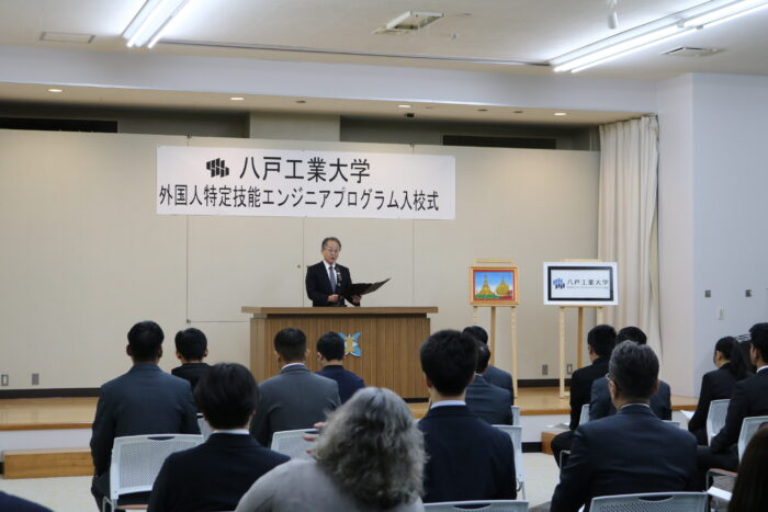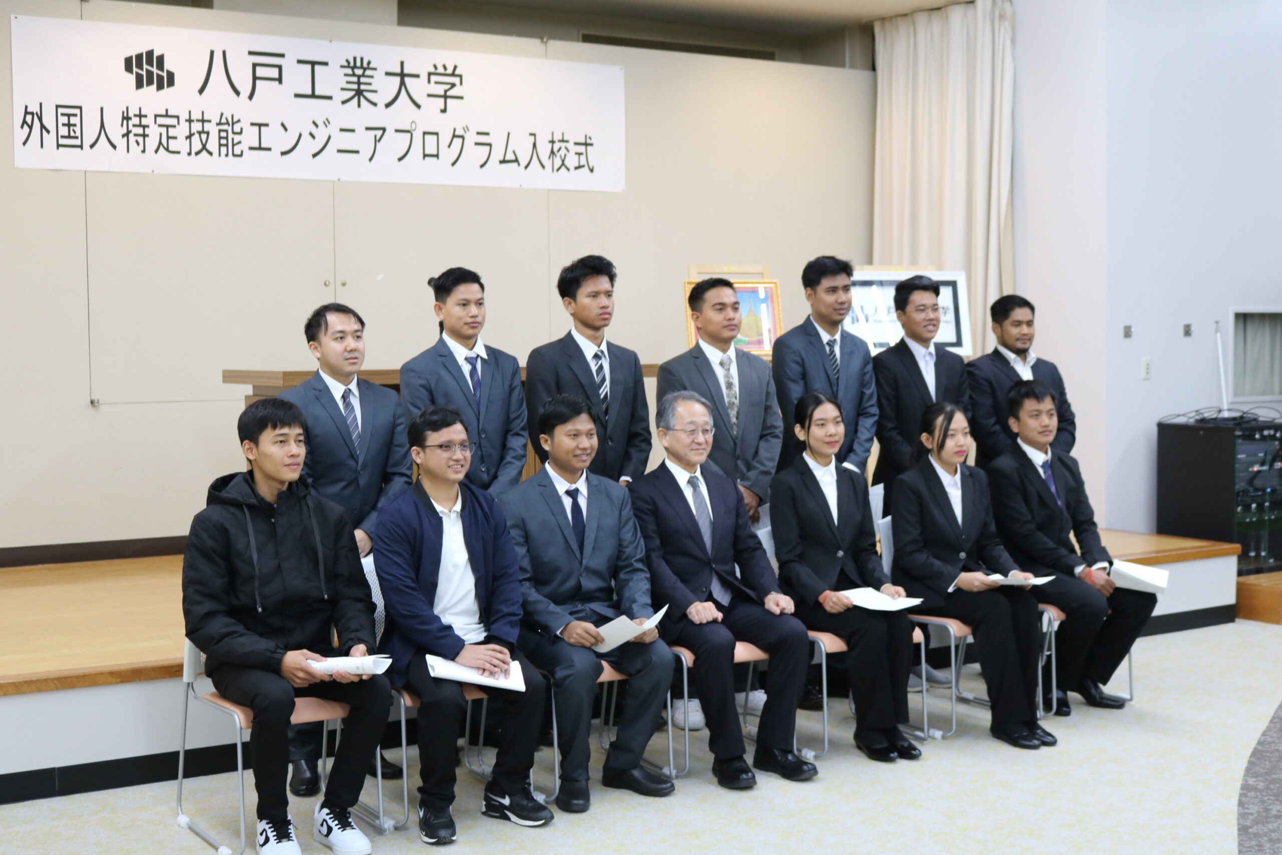 本学では昨年4月から「八戸工業大学外国人特定技能エンジニアプログラム」を開設し、留学生の特定技能1号試験合格を支援してきました。この度、後期の入学生13名がミャンマーから入国。工業製品製造業分野と、新たに自動車運送業分野を開講します。