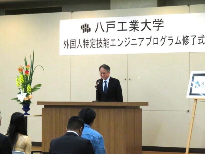 船﨑学長は、冬の八戸での生活や学びの苦労を乗り越えて目的を果たした修了生たちへ敬意を表し、「皆さんが本学での学びを胸にそれぞれの分野で活躍すること、そして将来、日本とミャンマーの友好をさらに深める人材になることを願う」と、今後への期待を寄せました。