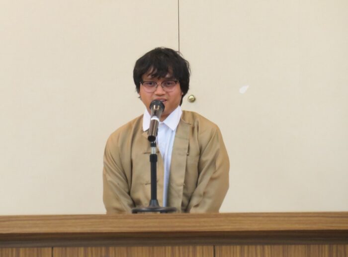修了生を代表して、CHAN MYAE AUNG(チャン ミャエ アウン)さんとPYAE SONE OO(ピャェ ソン ウー)さんが挨拶に立ち、これまでの支援への感謝を述べるとともに、「大学で学んだことと日本語力を活かし、会社のため、自分の夢のために一生懸命頑張ります」と力強く決意を表明しました。