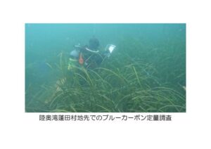 コンブ、ホンダワラ、アマモなどの藻場は、海洋生態系の基盤を形成し、漁業生産上も重要な役割を果たすほか、大気中の二酸化炭素を吸収しブルーカーボンと呼ばれる炭素を海中に貯留します。ブルーカーボンは、生物多様性の保全やカーボンニュートラルの実現に貢献すると期待されています。研究室では、藻場造成や海藻養殖の手法、ブルーカーボンの定量化、ブルーカーボン・クレジットを活用した地域振興の可能性を研究しています。