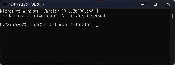 3. コマンドプロンプトに[start ms-cxh:localonly]を打ち込む